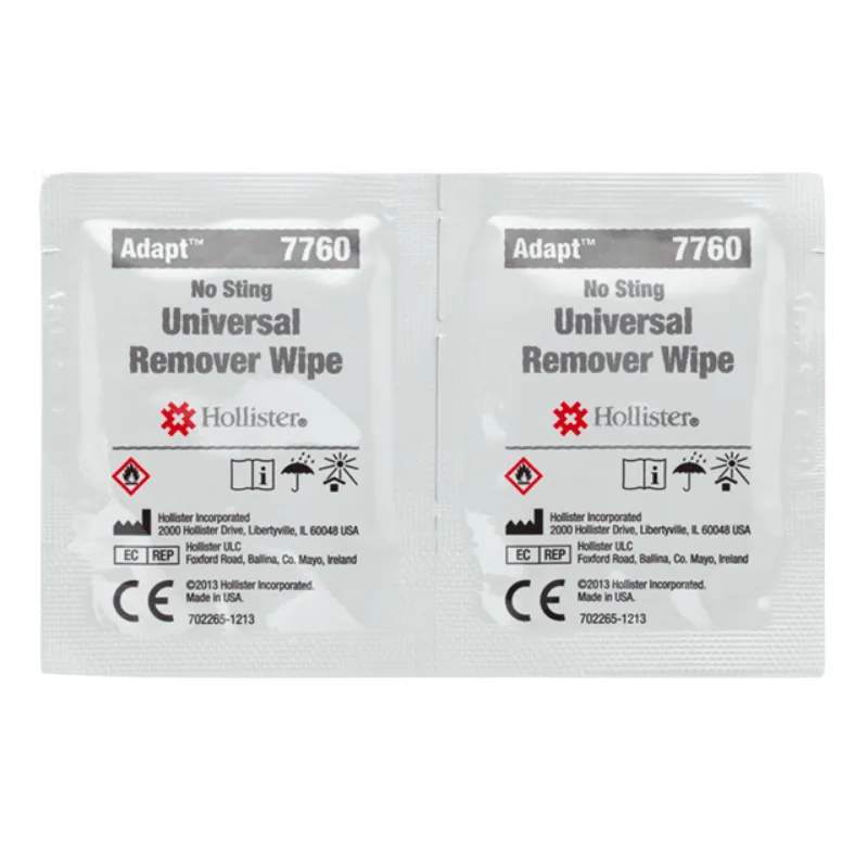 Los pañitos removedores Adapt son toallas húmedas sin alcohol diseñadas para eliminar suavemente los residuos de adhesivo en la piel periestomal. Ayudan a proteger la piel y a facilitar el recambio del sistema. Presentación: caja x50 pañitos (SKU 7760).